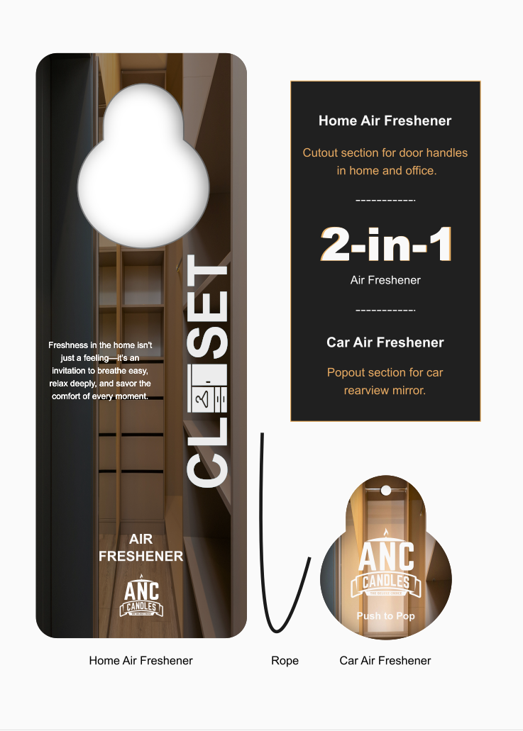 Why choose between home and car? Our innovative air fresheners feature a smart pop-out design. Hang the outer ring on any door handle to refresh your closet or office, and simply push to pop the center disc for a matching car freshener. One package, two distinct ways to scent your world.