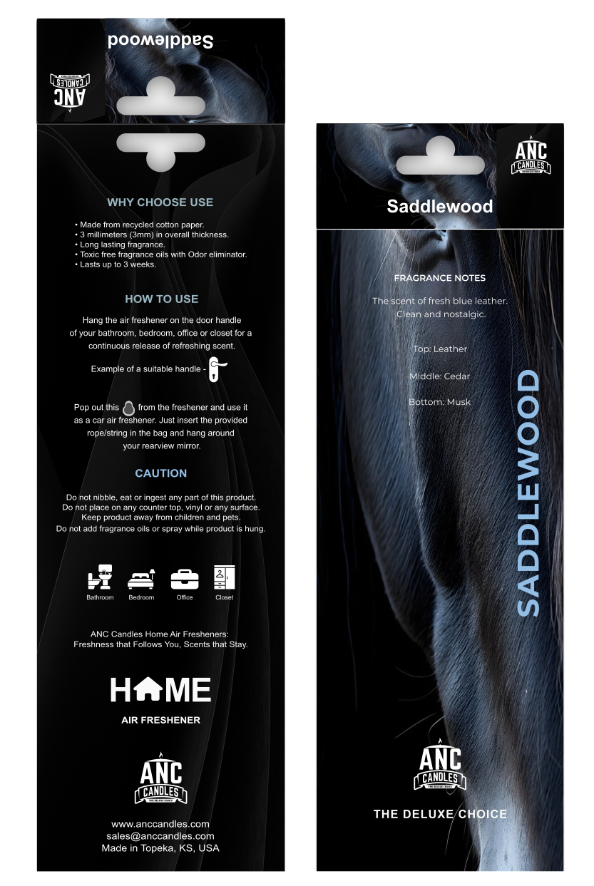 A bold yet smooth fragrance, Saddlewood blends the rich, earthy tones of aged leather and smoky sandalwood with a hint of warm cedar and spiced vanilla. This rugged yet sophisticated scent evokes the essence of finely crafted leather goods and the untamed spirit of the open range.