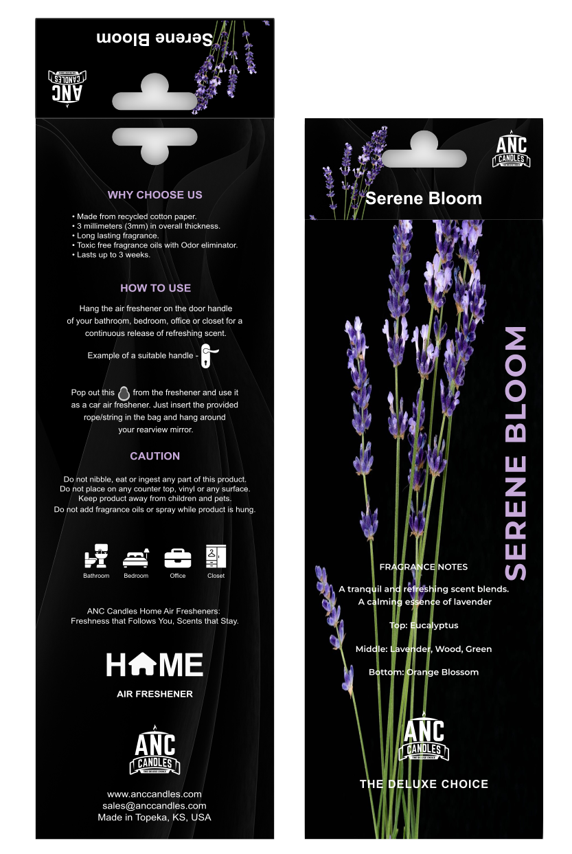 Elevate your space with our innovative Home & Car Air Freshener, expertly crafted for long-lasting fragrance and versatile use. Designed with precision, this air freshener measures 8.6 inches in height and 3.1 inches in width, with a durable 3mm thickness made from high-quality absorbent cotton cardstock. Engineered for optimal scent diffusion, it boasts an absorption rate of 0.05 oz/in², ensuring a consistent and lasting fragrance experience.